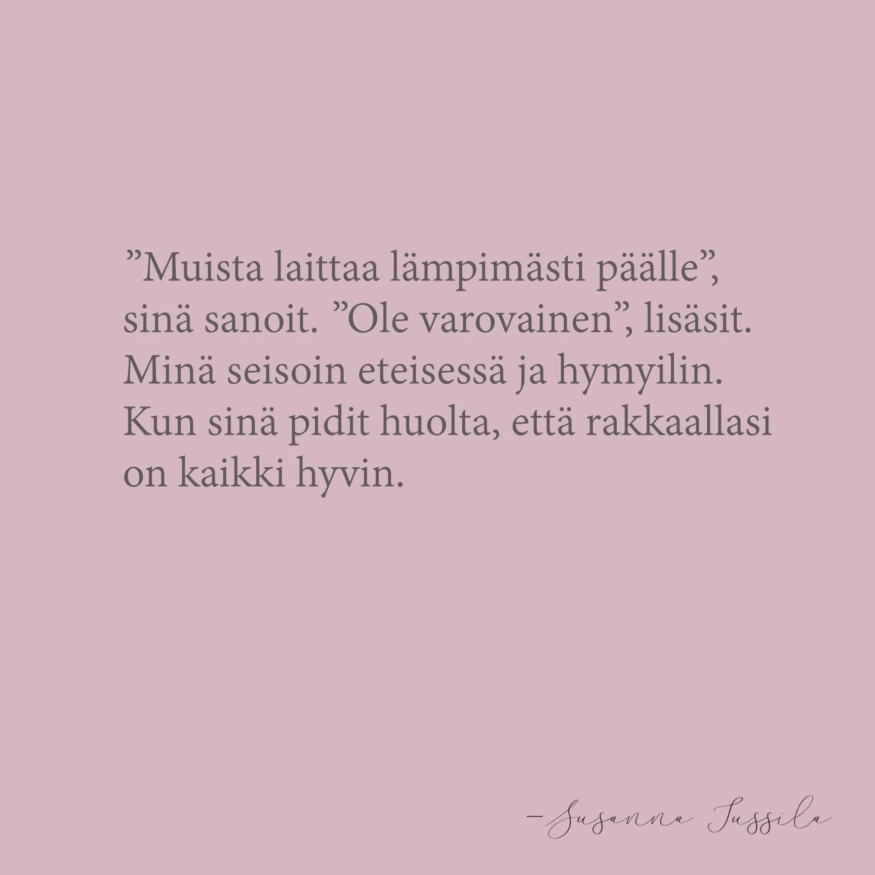 sinä sanoit. ”Ole varovainen”, lisäsit.